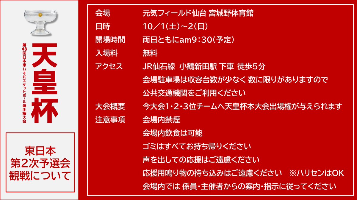 天皇杯 第48回東日本第2次予選会の開催情報です。男子U23世界選手権に出場した、東日本エリアの選手たちも出場予定です。仙台市近辺にお住まいの方は、ぜひご観戦にお越しください。