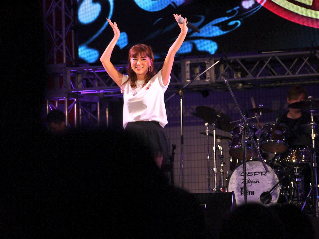 衣装は白Tシャツ,チュチュ風の超ミニスカート,白スニーカー