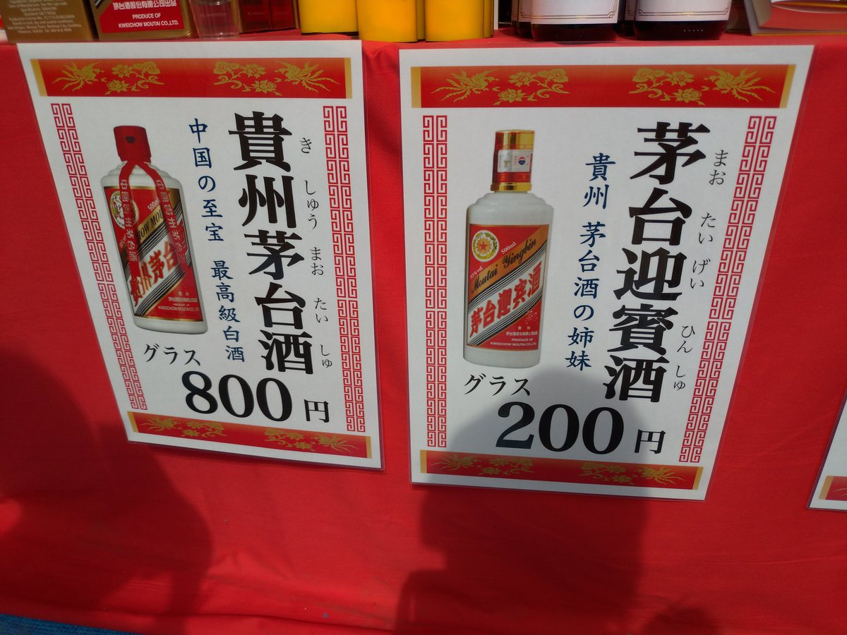 チャイナフェスティバル2019の会場では貴州茅台酒のグラス販売で試していただけます。中国伝統の一番有名なお酒、ぜひとも一度味わってみてください!