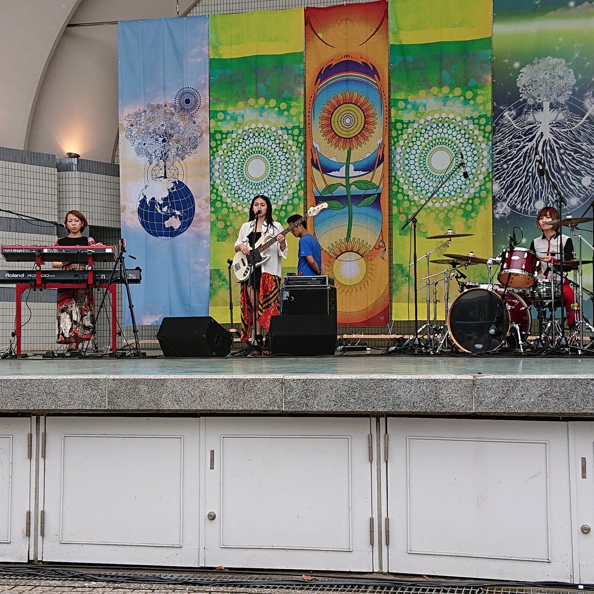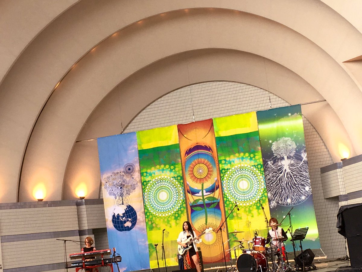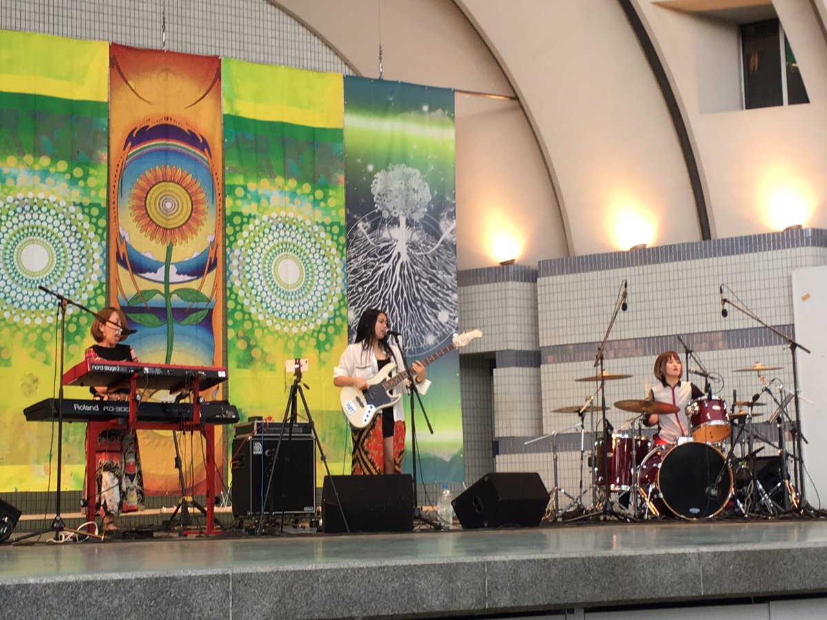 メインステージでは、14時からライブを行うTokyo Groove Joshiが準備中。