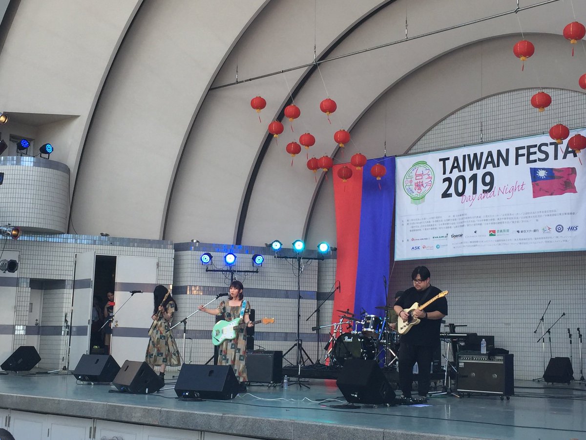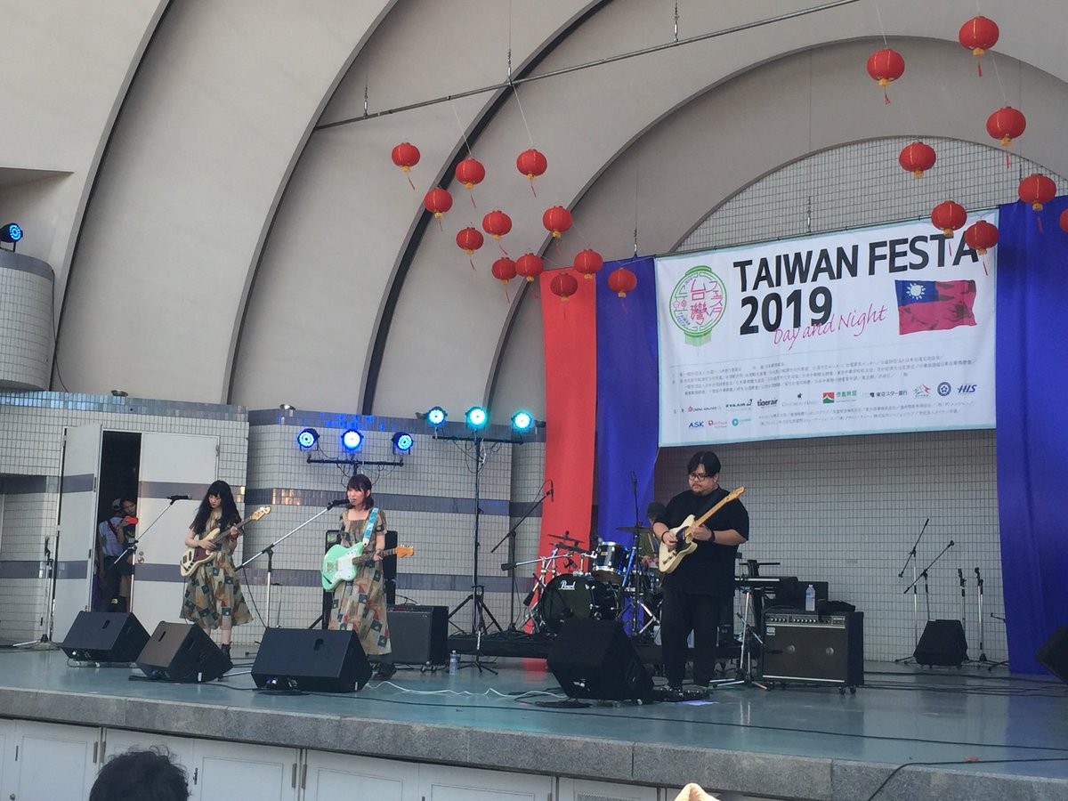 代々木公園の台湾フェスタ2019、ゲシュタルト乙女 @gestalt_girl のライブ。会場の暑さを吹き飛ばす勢いのクールな、でも熱いサウンドでよかった! Mikanのボーカルも印象的だったけど、圧巻だったのはギターKaiakiのプレイ。実に見事でした。明日もステージあり、行ける人はぜひ!(B) pic.twitter.com/hgVlQaJvde