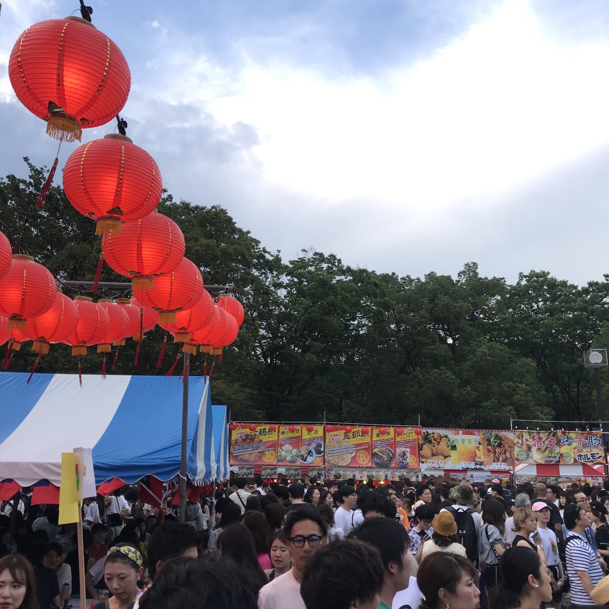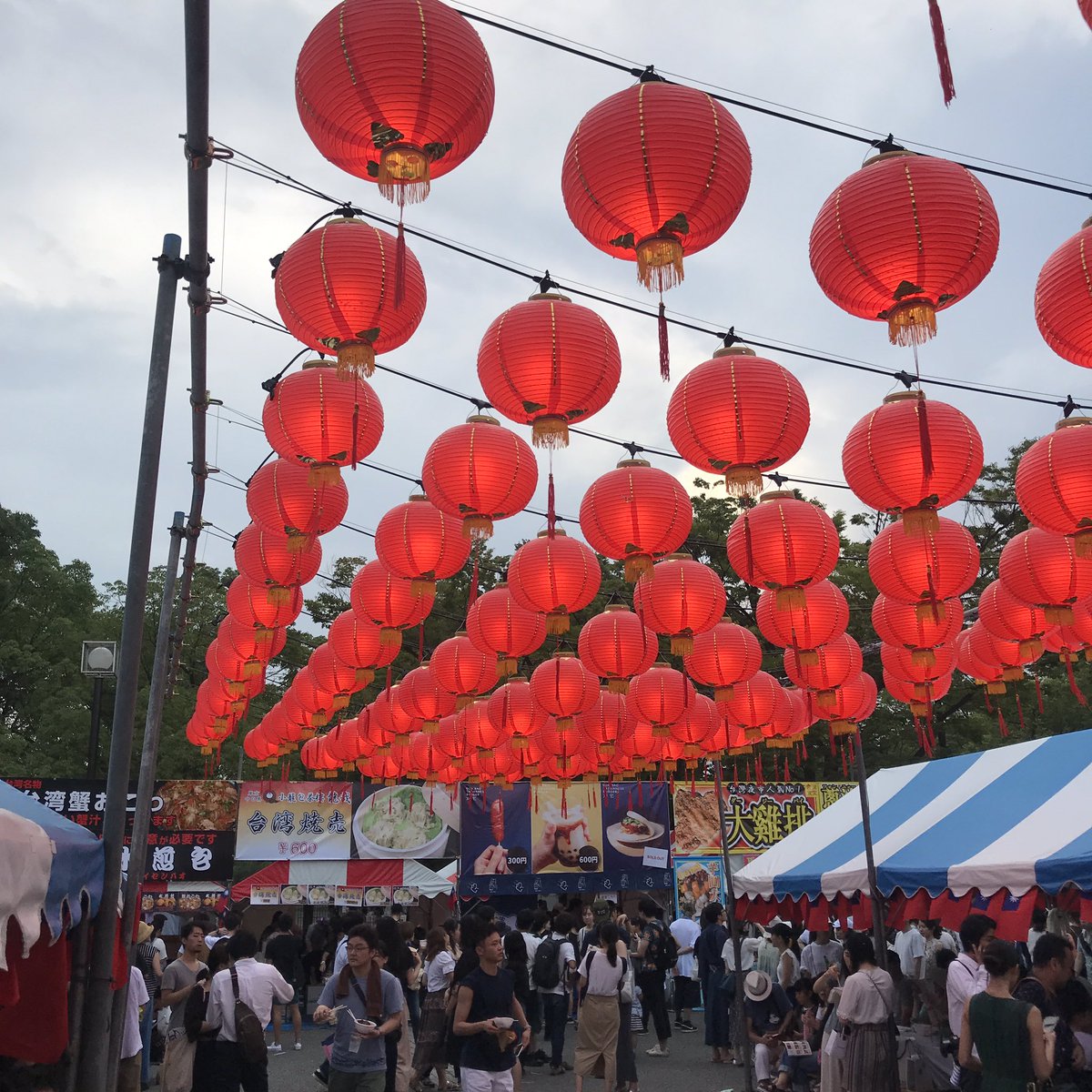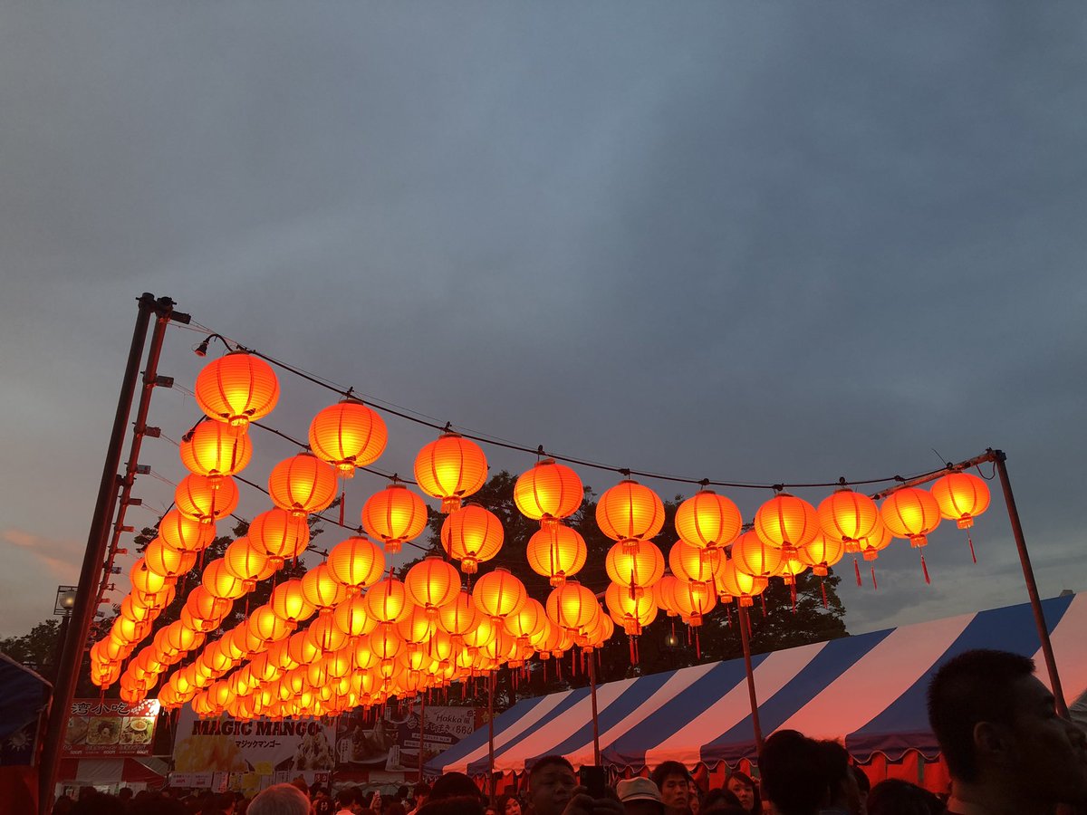 陽が陰って少しはしのぎやすくなって、提灯も灯って夜市の雰囲気出てきたところで次の場所移動開始。 pic.twitter.com/olmW5YX5DL