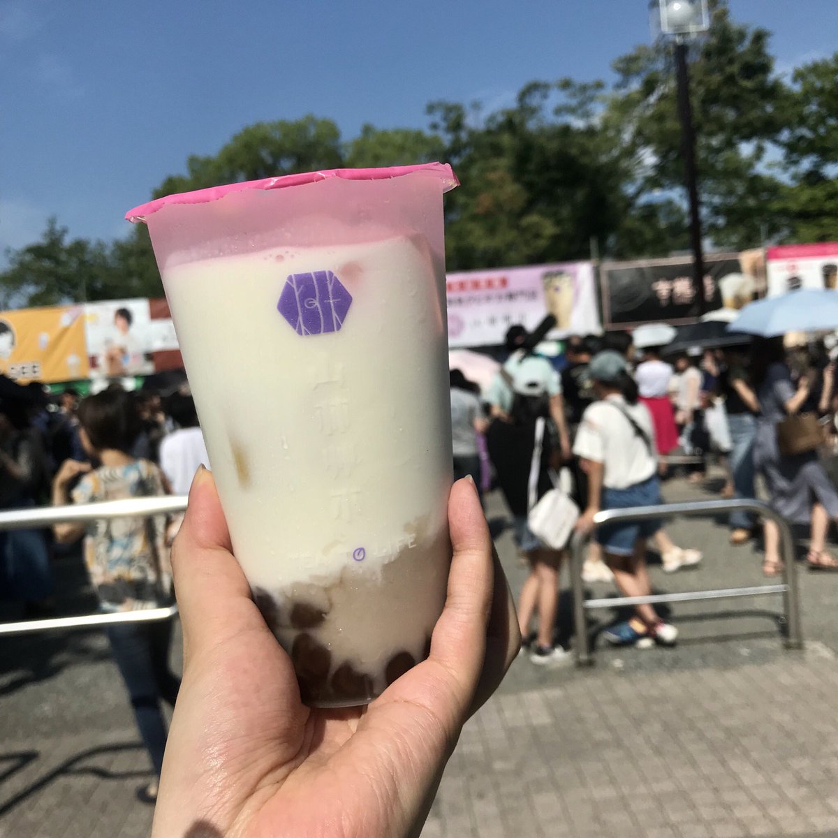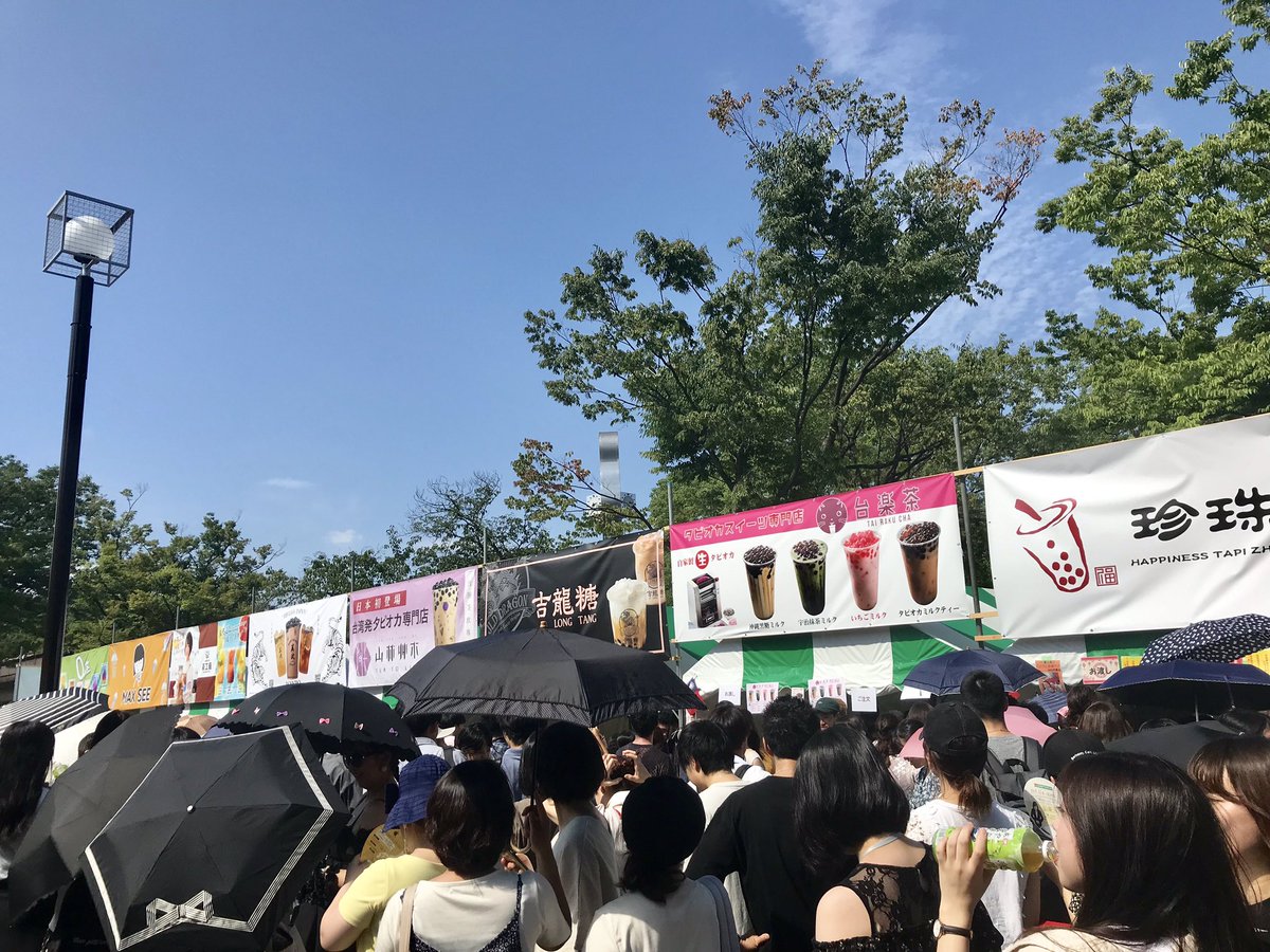 台湾フェスタを満喫したぞ。タピオカストリートで買ったのはもちろん日本初出店の山林艸木(サンリンソウキ)、タロイモタピオカミルク。タピが透き通っていてやわやわうまい!梅田にオープンするんかい。魏姐包心粉圓の小豆入りタピオカは一粒が驚きのデカさ、あんころ餅風ビッグインパクト #るりタピ pic.twitter.com/y3HGXhgXMO