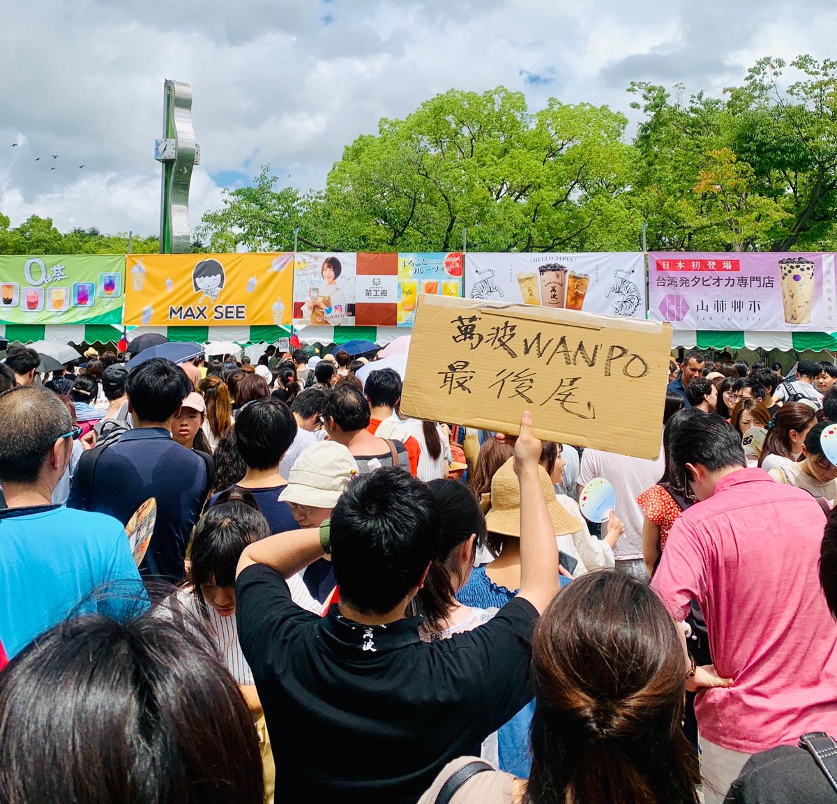 お目当てのお店を見つけたら最後尾札を探すのです....列の向こうでタピオカが歡迎光臨してます( ^ω^ )