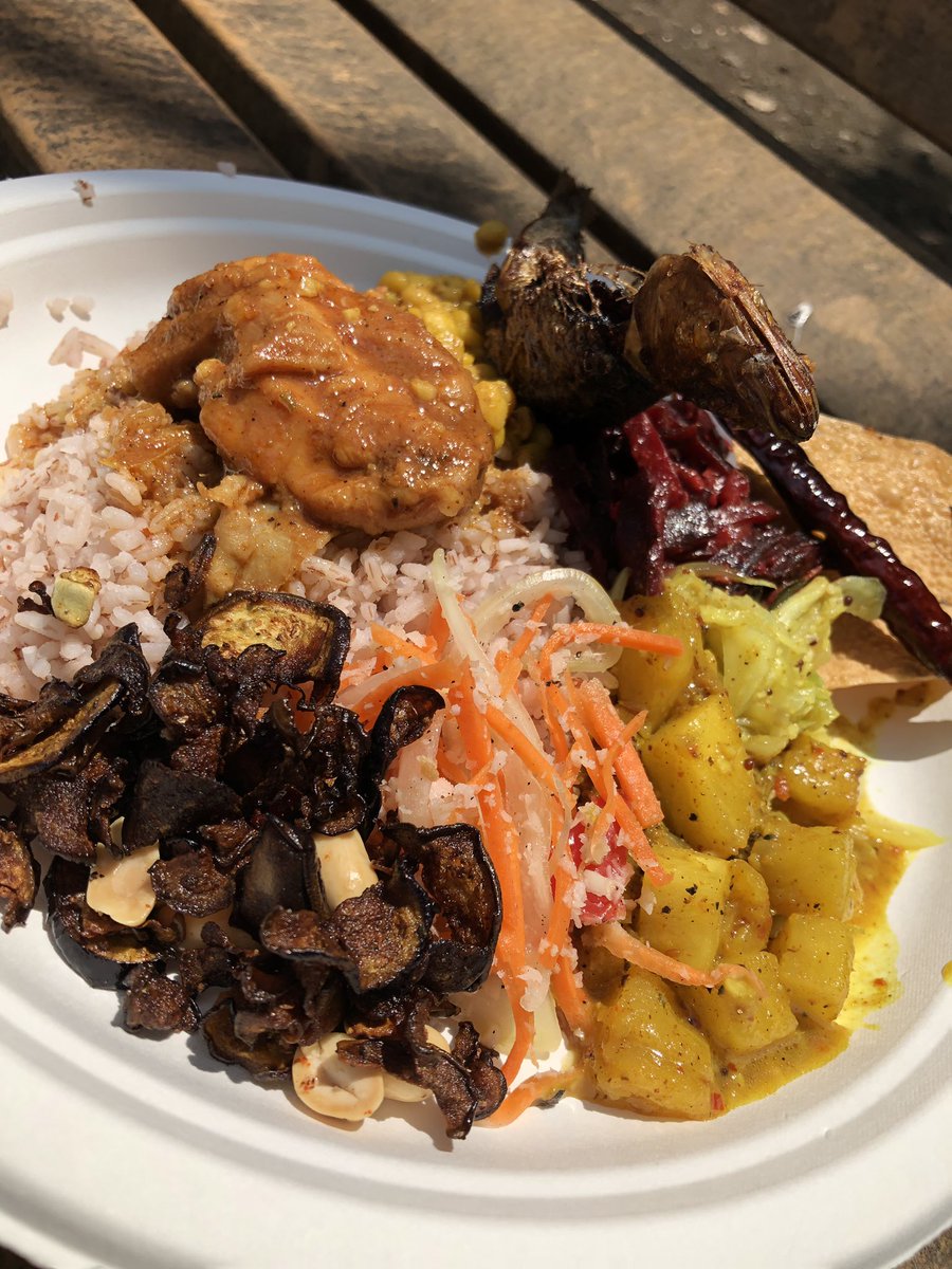スリランカフェスティバルに行ってきた。あいがけのスリランカカレーは辛味が効いていて美味しかった!例年どおり食材が安いのはありがたい。サンバルの惣菜などをテイクアウト。楽しみ♥️ pic.twitter.com/DmdFtTZ0Qb