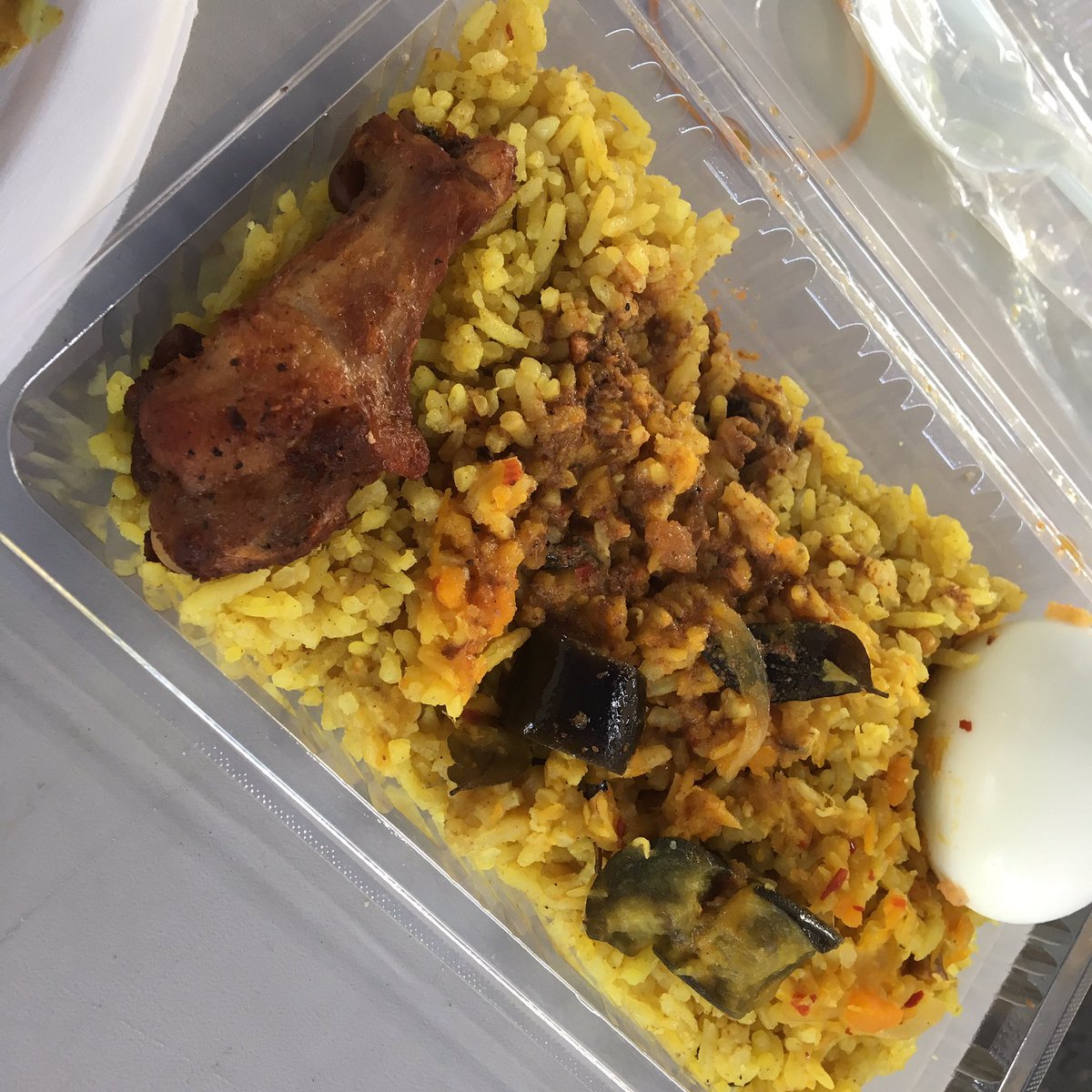 バナナリーフさんのビリヤニ。パラパラごはんと程よい辛さ。茹でとフライドチキンが乗ってる。スパイスが効いてる部分と茹で卵がとても合うのです。バターの効いてないところが洋風のカレーピラフとは違うのです。脂のコクでなくスパイスで旨味をだすスリランカ味、良いです。 pic.twitter.com/zDVG4bcUwu