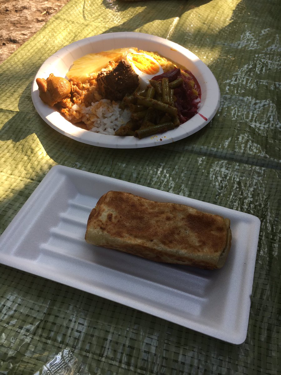 20分並んでホットスパイシーのカレービュッフェ。もちろんレッドライスで。ここに来るまでにロティとパティスも食べちゃったから、もう満腹。どれだけ暑くても相変わらず食欲は衰えず。#スリランカフェスティバル pic.twitter.com/nz9vJhRJxi