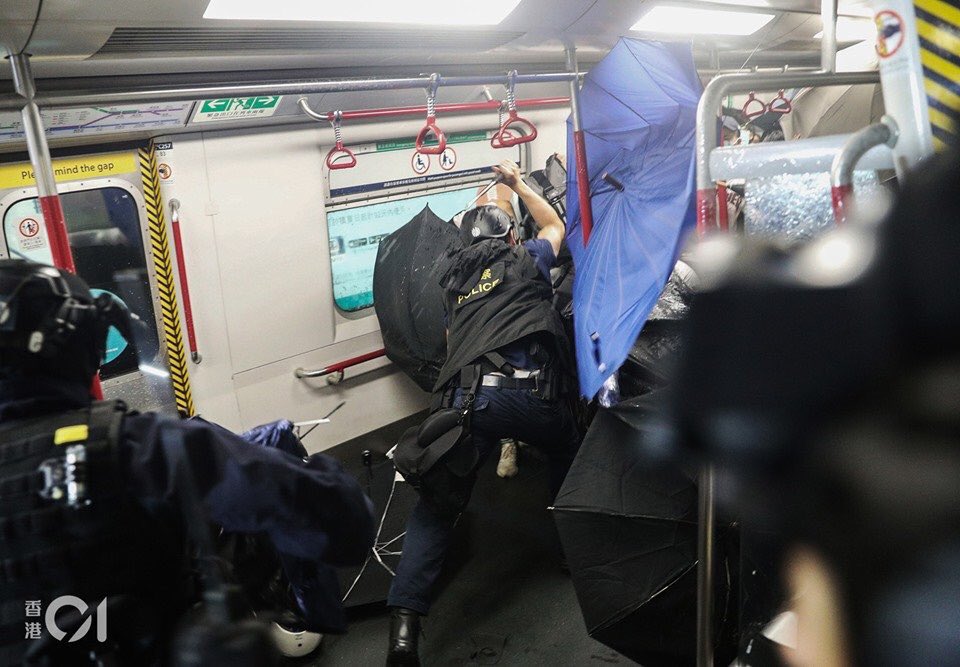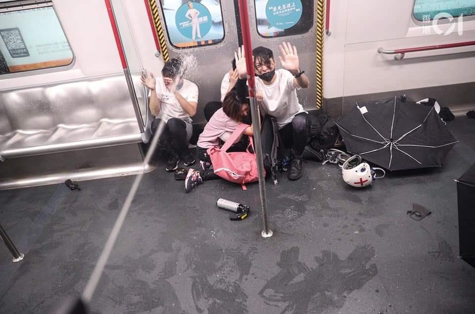 This footage is circulated online showing how police beat passengers in an MTR train at Prince Edward Station. Some people recall the 721 Yuen Long violence and say police are doing the same thing as whiteclad alleged triad members did on July 21 in Yuen Long. #ExtraditionLaw pic.twitter.com/UC2bh8NOCR