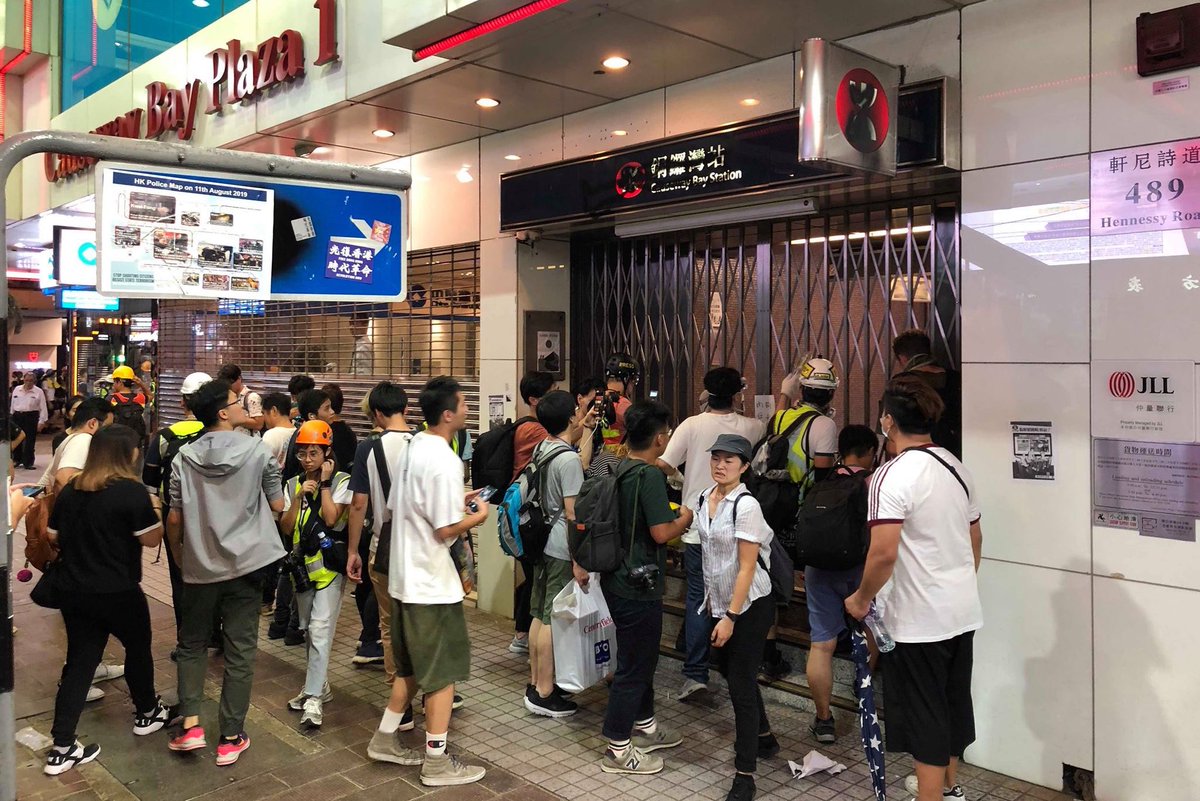 Riot police have just been physically forced into CWB MTR after losing control of the situation in Wan Chai & being forced back by protestors. They were again aiming pepper spray directly in the faces of journalists & LegCo member Hui Chi-fung. #反送中 #antiELAB #HongKongProtests pic.twitter.com/bEeglBGlqs