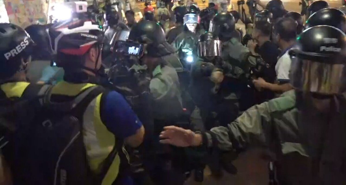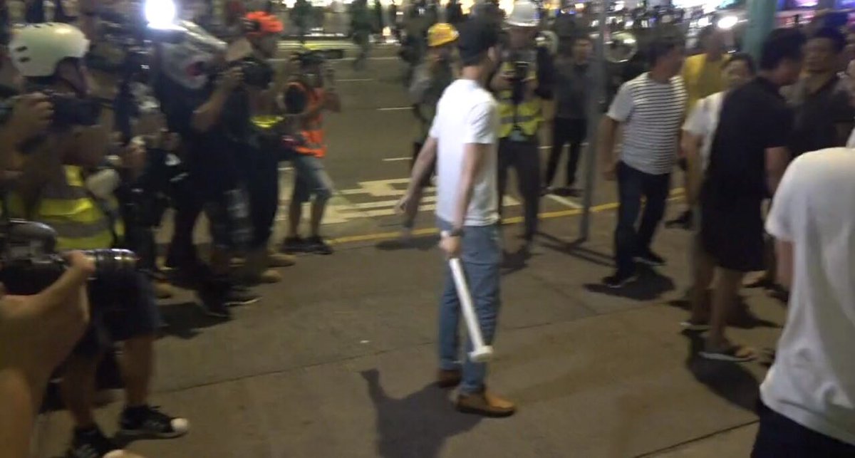 Armed men in white shirts are attacking onlookers at Fortress Hill at 8pm on Sunday. Reporters on the scene observed that police did not stop them.