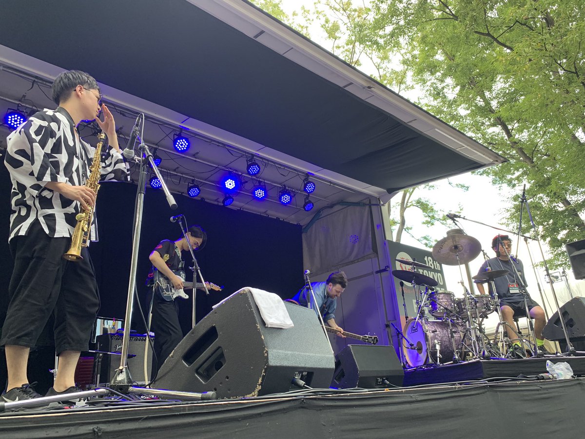 予報が外れて思わぬ快晴、でもそこまで暑くない絶好の野外JAZZを無料で楽しめる幸せプライスレス。jizueからKei Katagiさんの涼やかな音色に始まり、bohemianvoodooが颯爽と風を吹かせる。これ気持ち良いよ! pic.twitter.com/LaUfIcVDs9