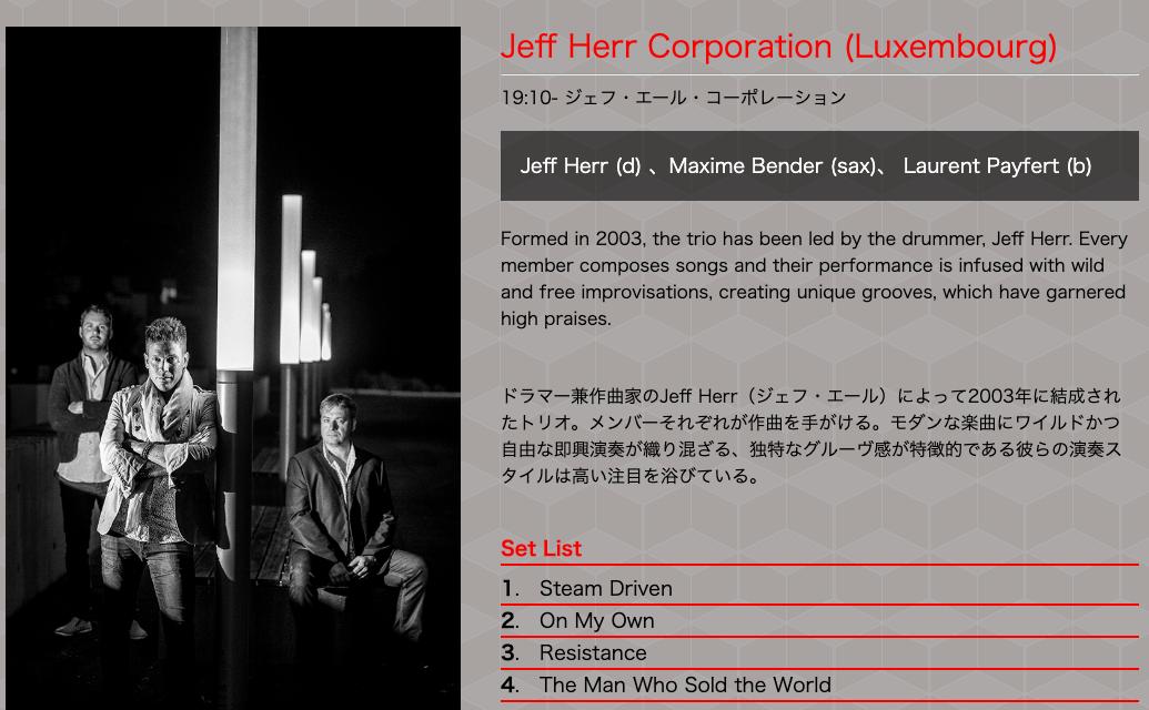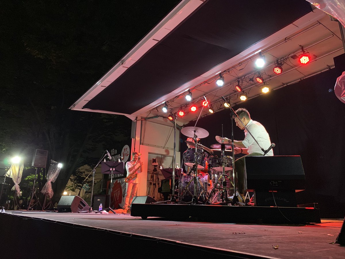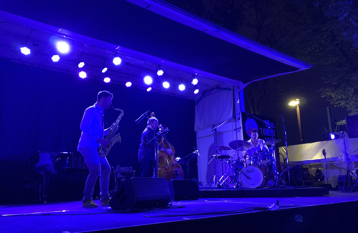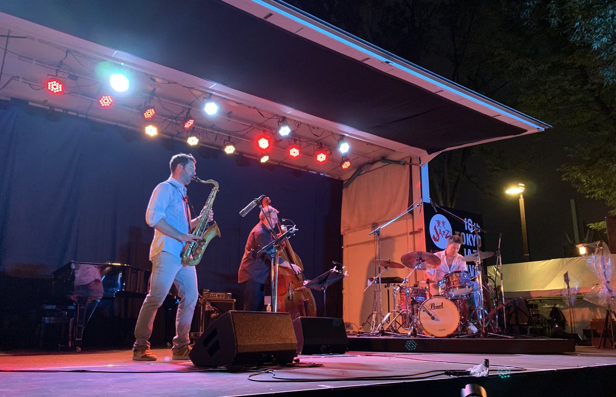 東京JAZZ Plazaステージ、ラストはJeff Herr Corporation🇱🇺。仏独白に囲まれたルクセンブルクから。すっかり陽も暮れたステージに、大人の渋みと自由奔放さが混ぜこぜになった心揺さぶる演奏。1日の終わりとして完璧でした。こんな快適な野外なら毎回でも行きたいんだけどなあ。 pic.twitter.com/V458IQ8acM