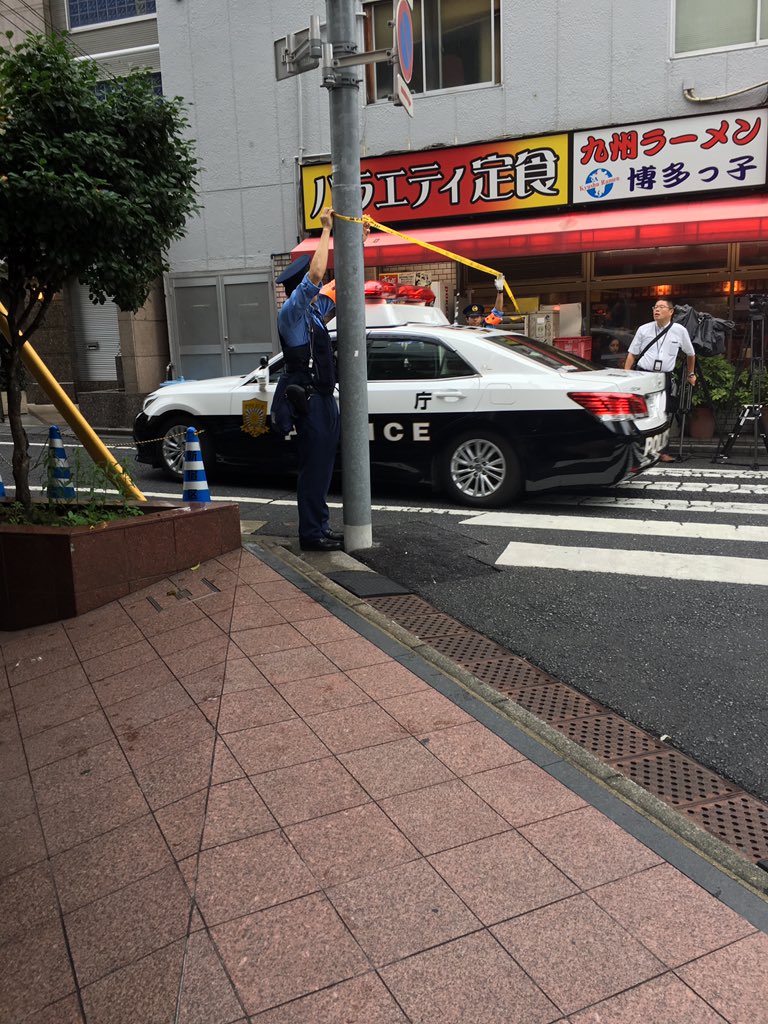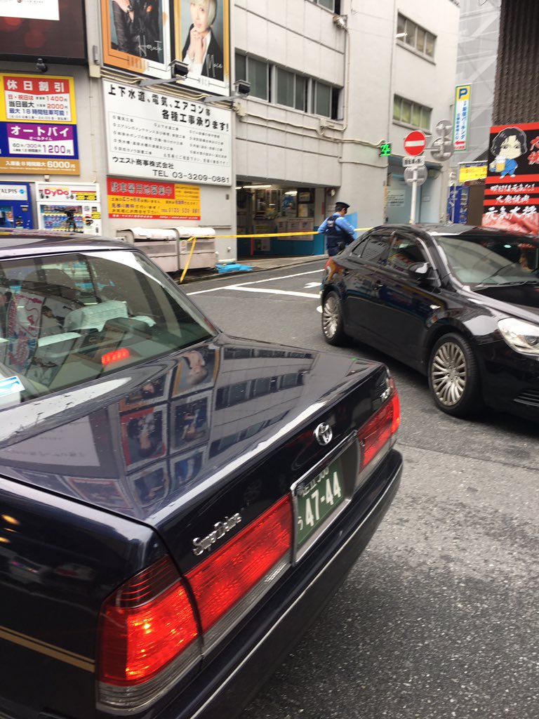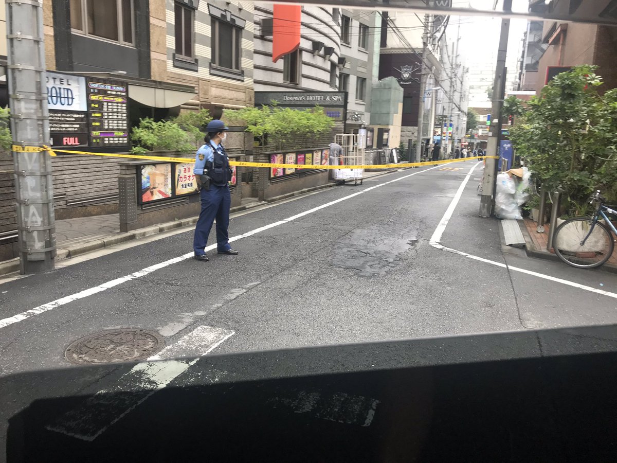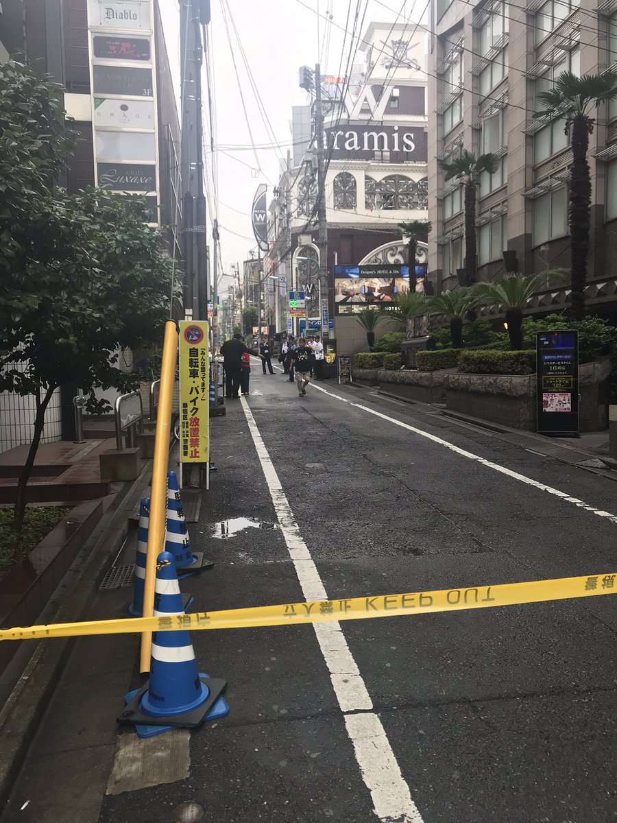 歌舞伎町で殺人事件らしく、機材車停められない…