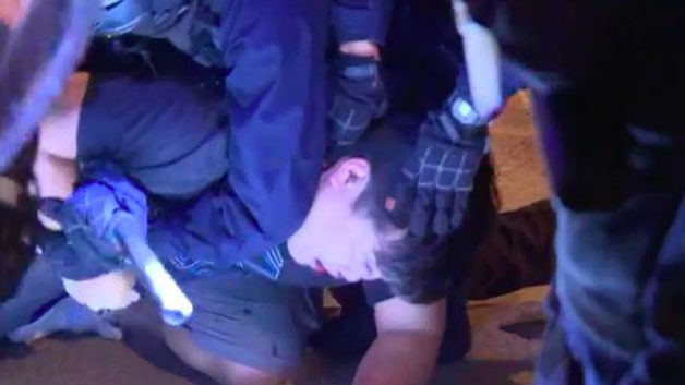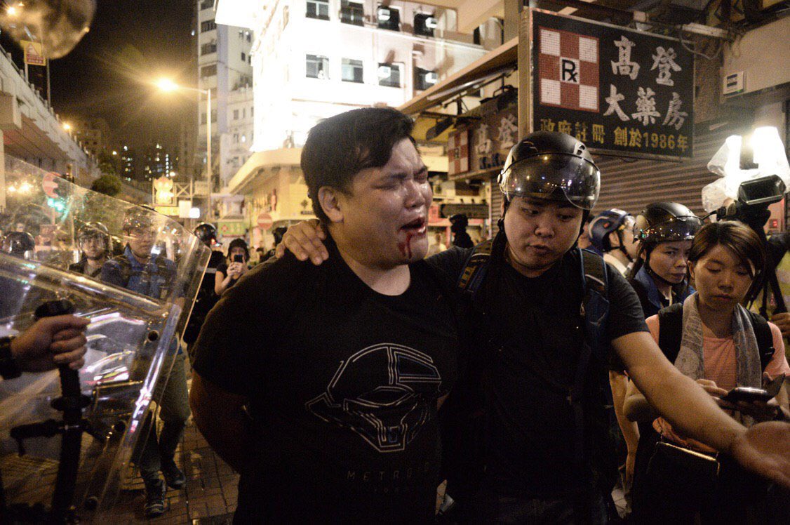 【20190804】香港01時頃、市民は警察に撤収して欲しくて、旺角警察署の前に声を上げた。突然何名の警察は市民に向けて猛進し、市民を殴り始めた。最低3名の市民は流血し、逮捕された。 pic.twitter.com/2E4ku7ttLa