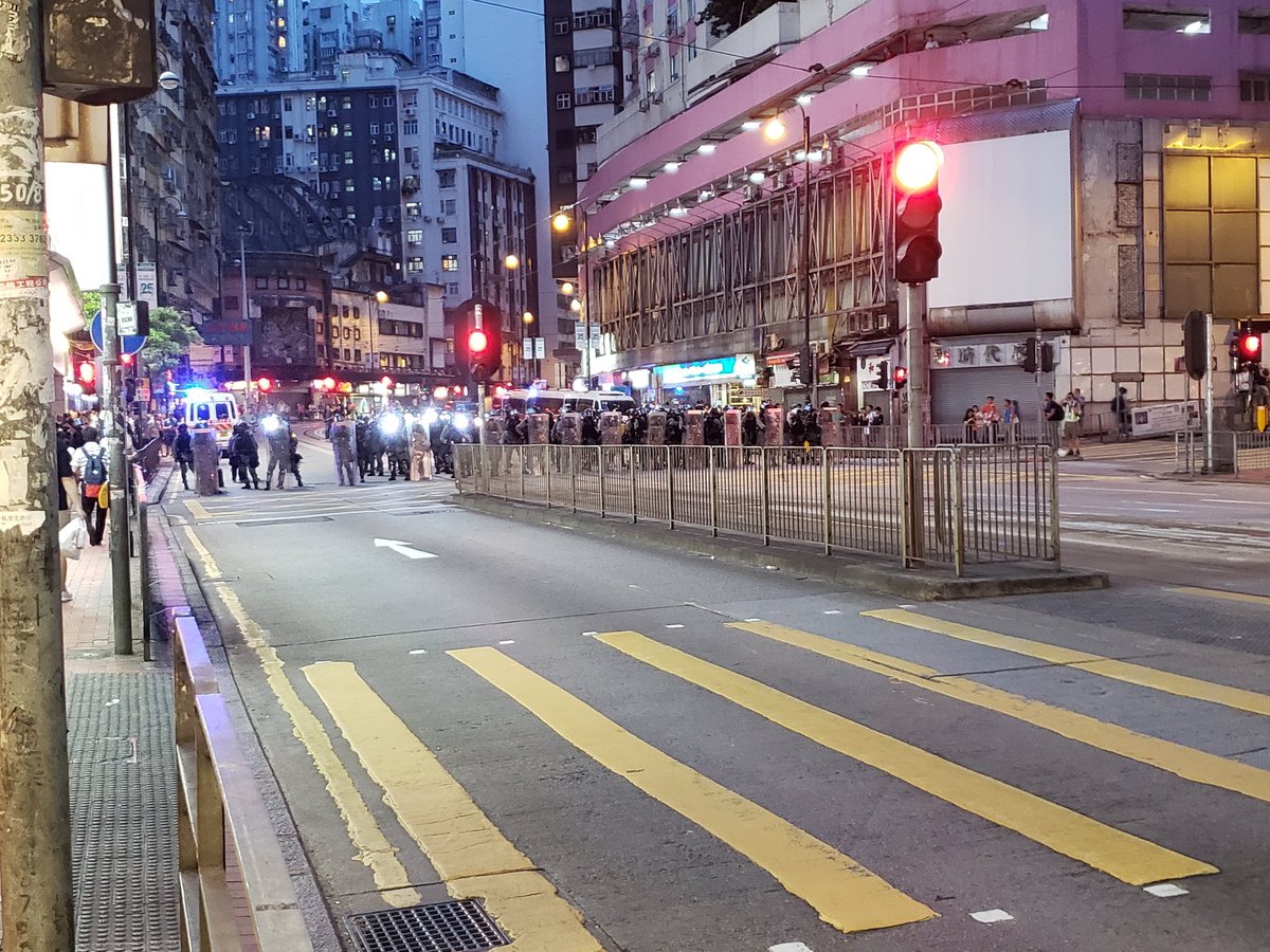 Riot police have been spotted on King's Road in North Point, while traffic has been halted.