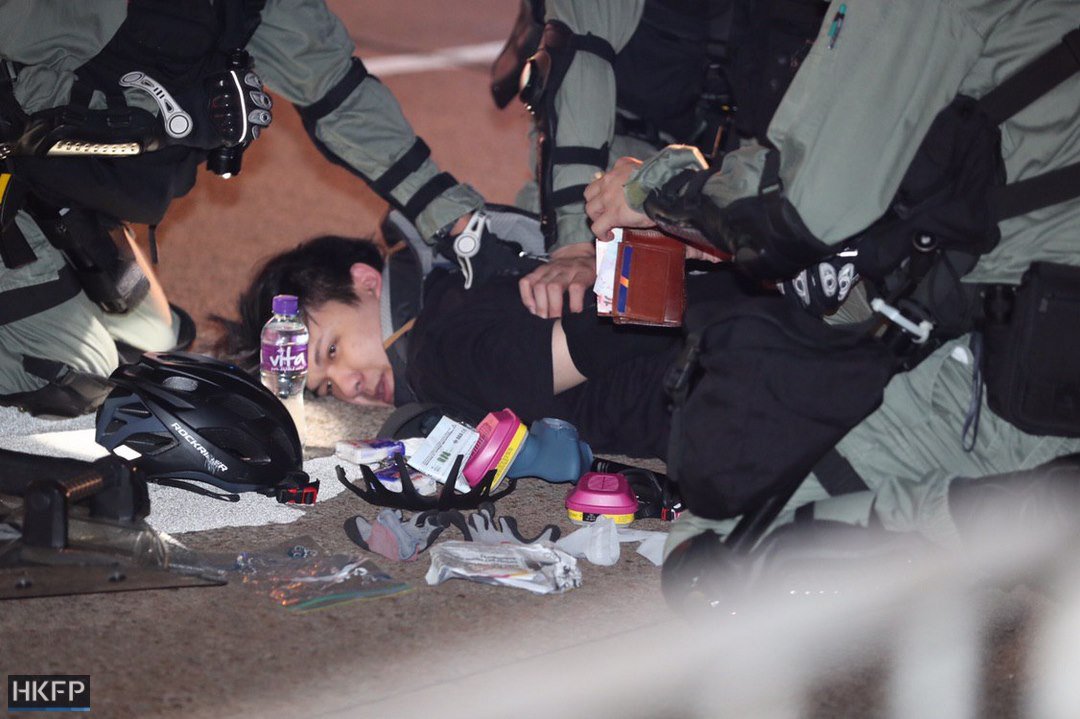 A group of plainclothes officers, disguised as protesters, launched a surprise operation to arrest protesters outside SOGO department store in Causeway Bay. At least a dozen were arrested. The officers refused to answer reporters' questions on their identity.