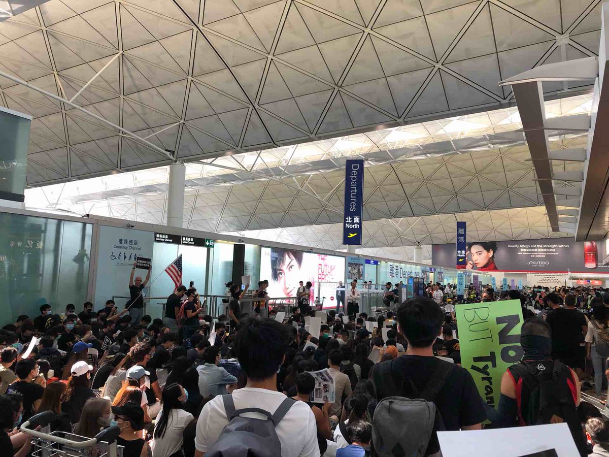 香港国際空港ではデモ隊が出国ゲート前で座り込み。封鎖されております。本日の便も大幅に欠航が見込まれますね。 #hongkong #香港国際空港 pic.twitter.com/Df4GbrURfg