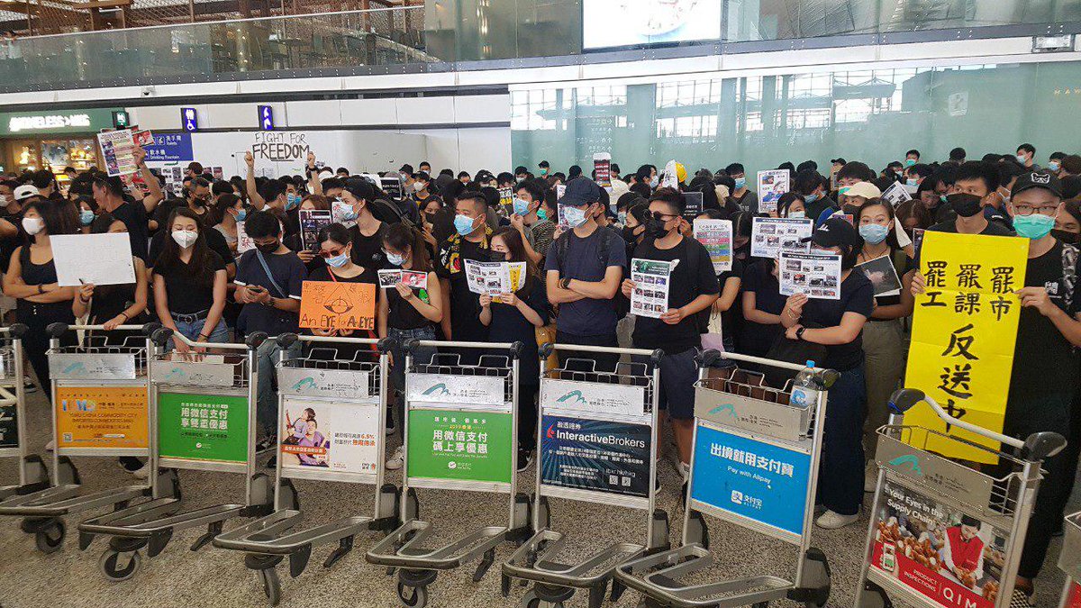 @hkairport protesters defend themselves with ... barricades of shopping trolleys and metal barriers pic.twitter.com/tbugwKbFI8