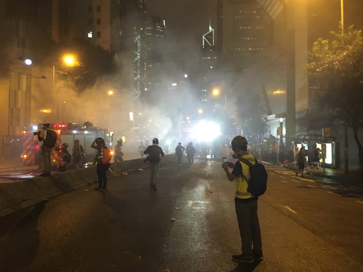 @hkpoliceforce Riot police fired more tear gas onto protesters on Harcourt Road from Wan Chai.
