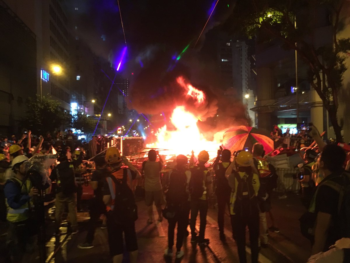 @hkpoliceforce @jgriffiths Protesters have started a big fire near the @hkpoliceforce headquarters in Wan Chai. pic.twitter.com/XccPcN326R