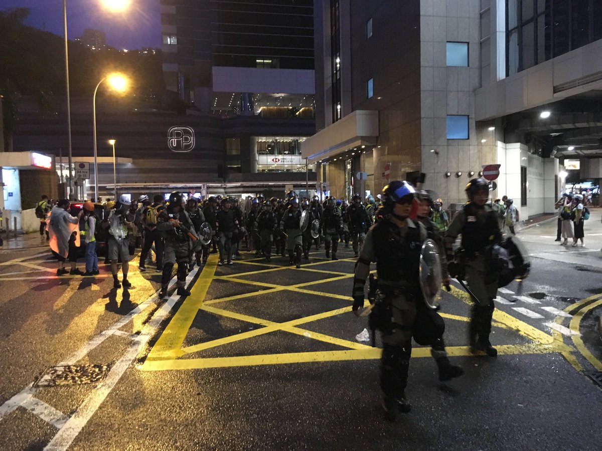 @hkpoliceforce Riot police have started moving in onto Harcourt Road where protesters were gathering earlier.