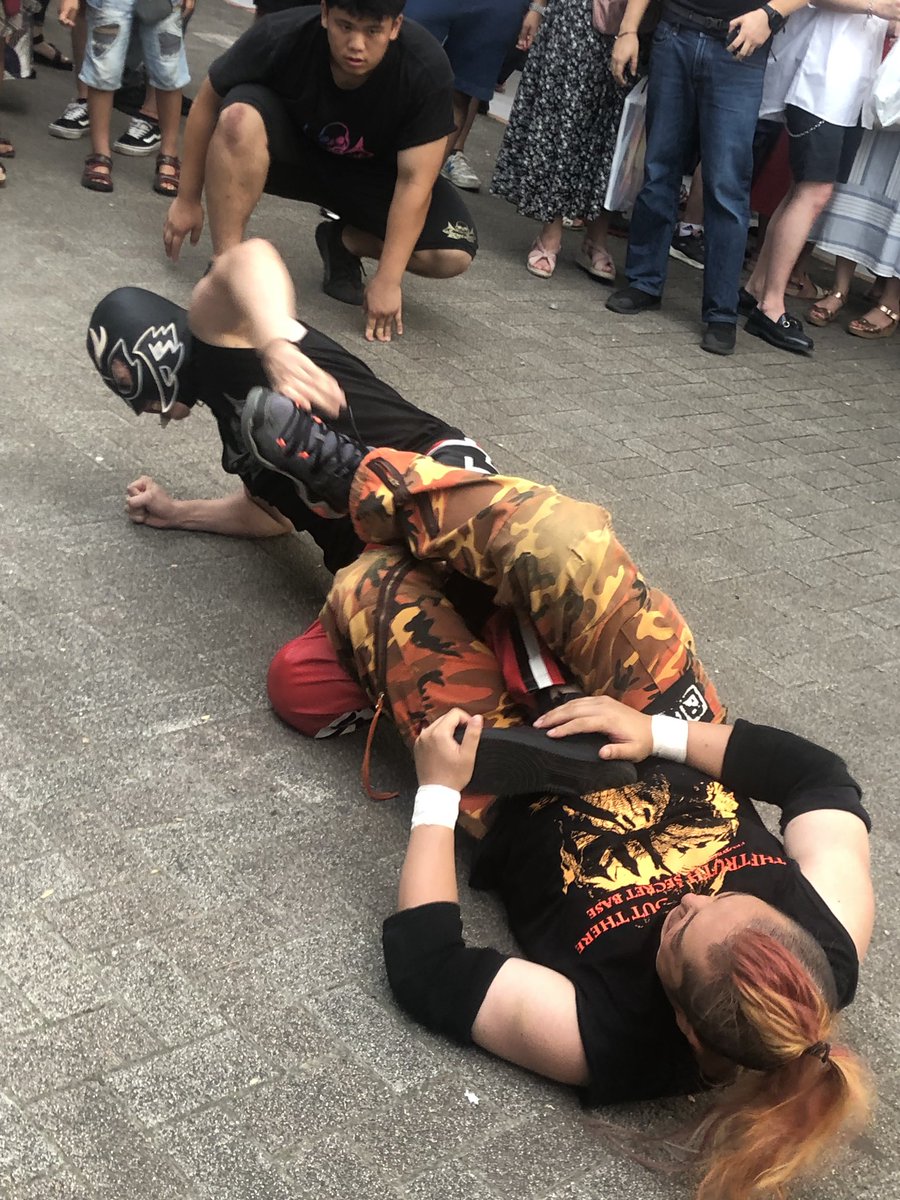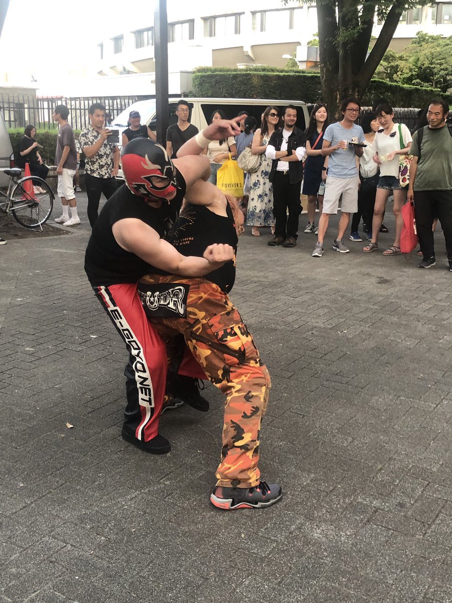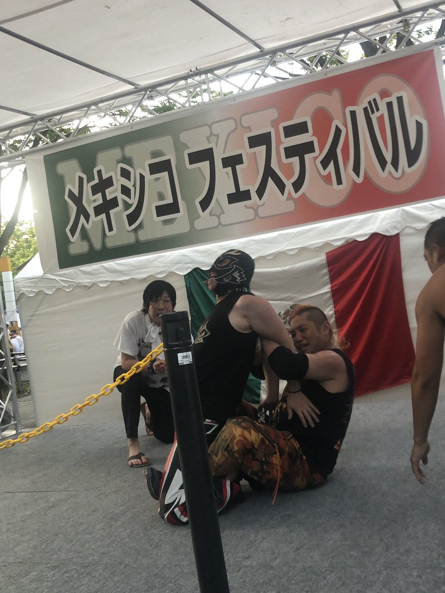 リング代わりのステージでは狭そうだなぁと思ってたらほぼほぼ場外で、路上プロレスになってました😁 pic.twitter.com/yWSaxXUNDY