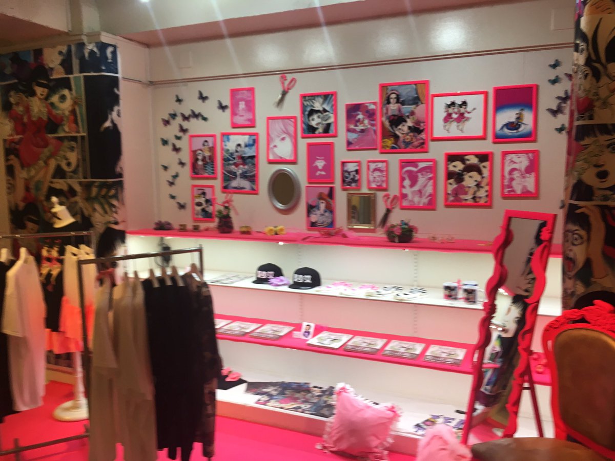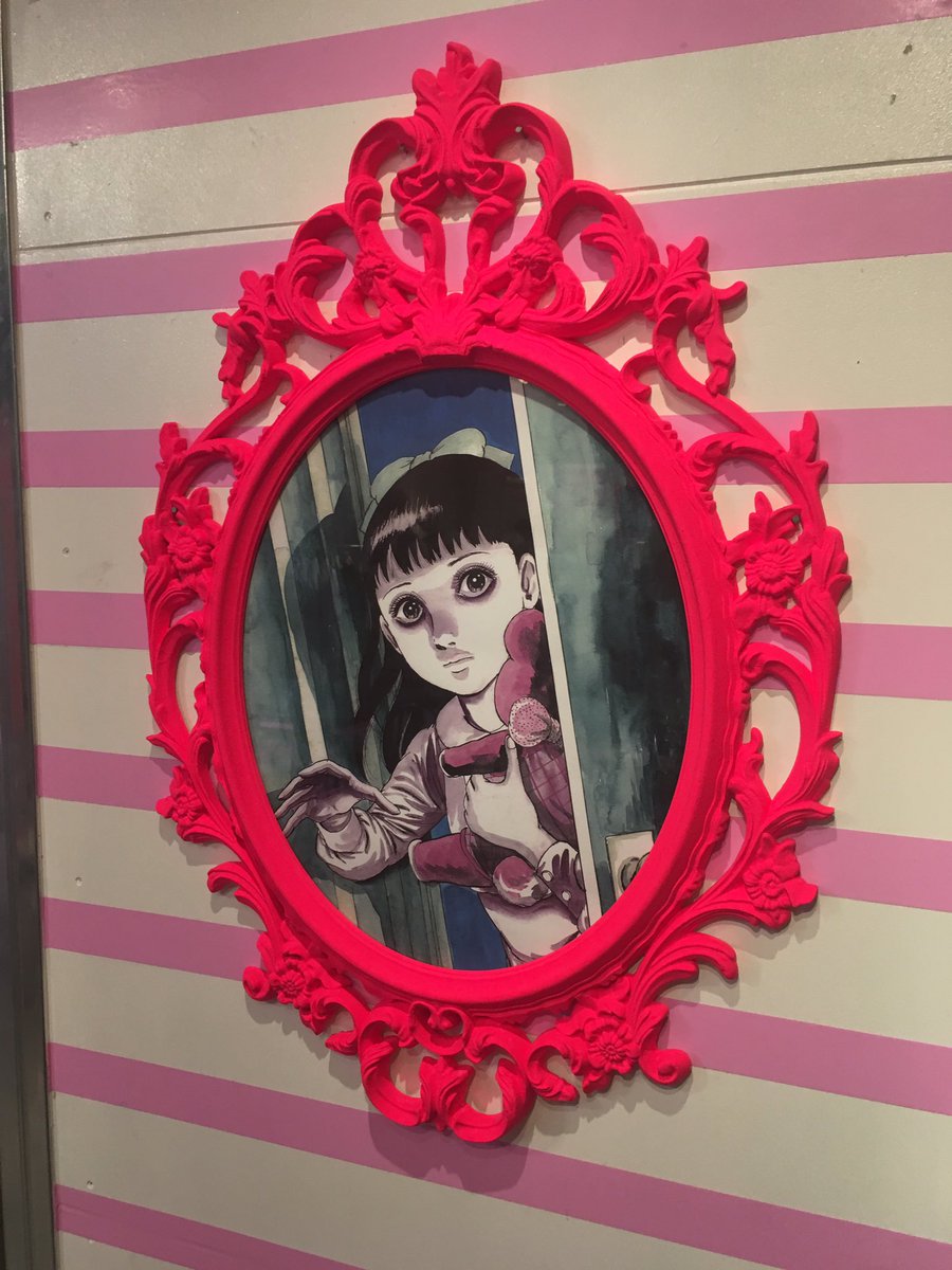 というわけで今日のメインは「楳図かずお 美少女コレクション展」。いつもの楳図先生テイストとはちょっと違う、ピンクを基調にしたややポップな展示だったよ! pic.twitter.com/7624bWd9YT