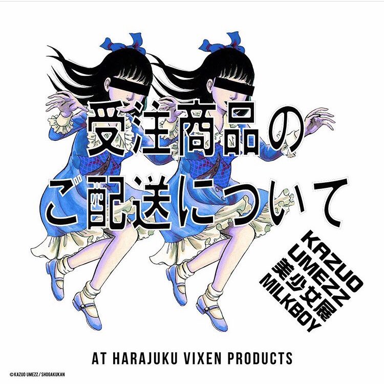 ギョエー!「カズオ ウメズ 美少女展 ミルクボーイ」が東京ヴィクセン・プロダクツで開催中なのらー!複製原画が展示され、楳図先生とミルクボーイのコラボTシャツや「美少女スウィーツ」が販売されているのらもーん! pic.twitter.com/ATM97eQoxM