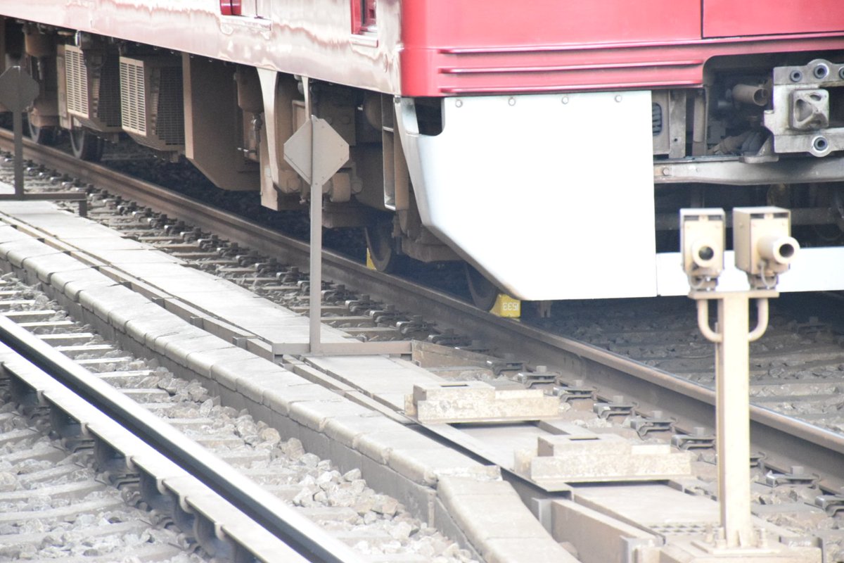 京急新子安駅。饋電トリップを伴う脱線事故だったのであの瞬間以来コールドスリープを受けてる。車輌はパン下げと手歯止めで完全に落としてる状態 pic.twitter.com/zaqjWa2CLM