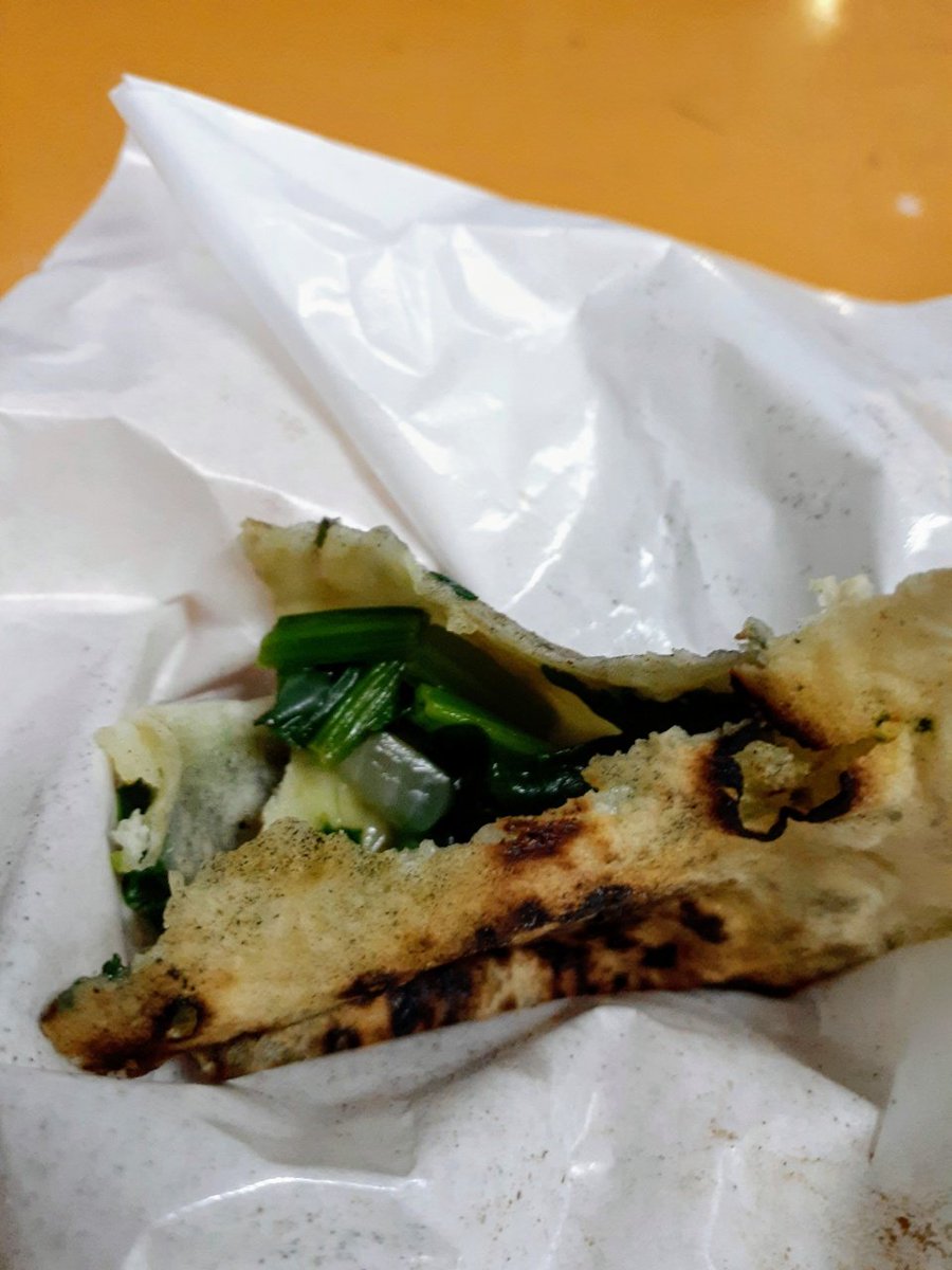 ほうれん草とチーズ入りのギョズレメ。受け取るとき「どこの国の人?」と聞かれ日本人と言うと「うそ、ベトナム人でしょう?」ときた🇻🇳 なんだその自信はw その後「お釣り渡したっけ?」と言われ、さっきまで財布に無かったはずの500円玉を確認して「ええ貰ってますよ」と答える。大丈夫かいな。 pic.twitter.com/jWWGNX32rS