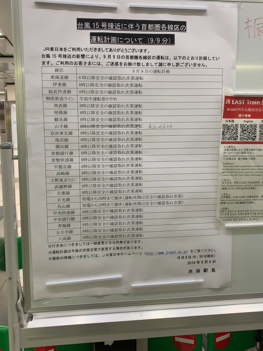 山手線は倒木で見込み立たず。