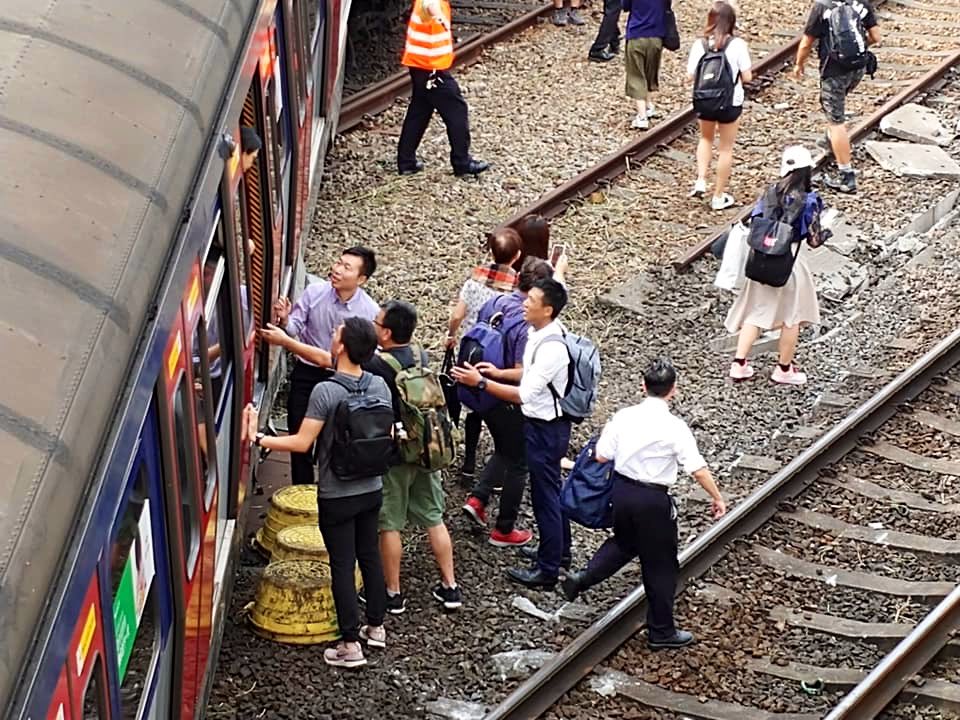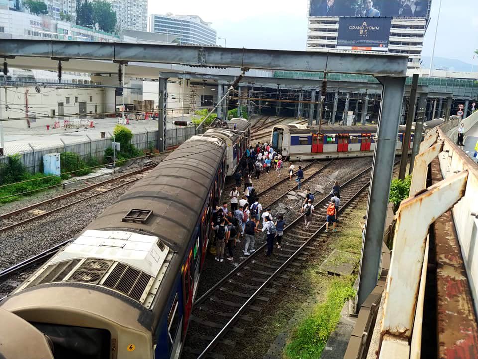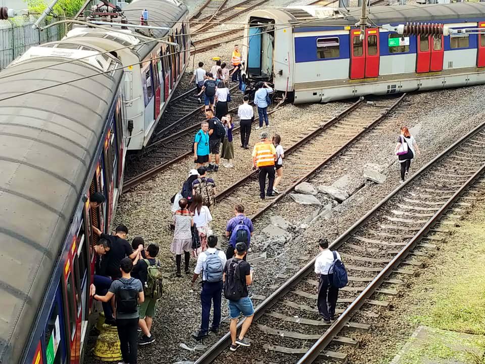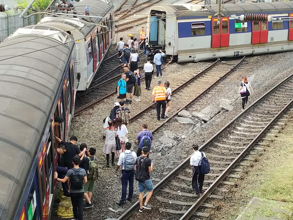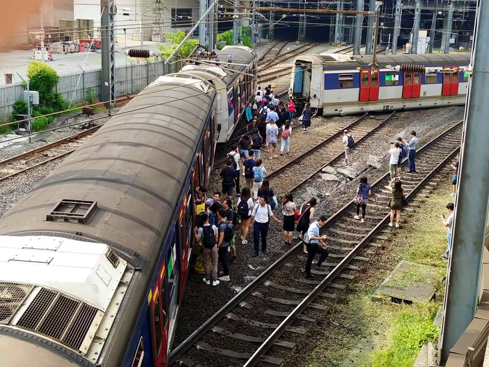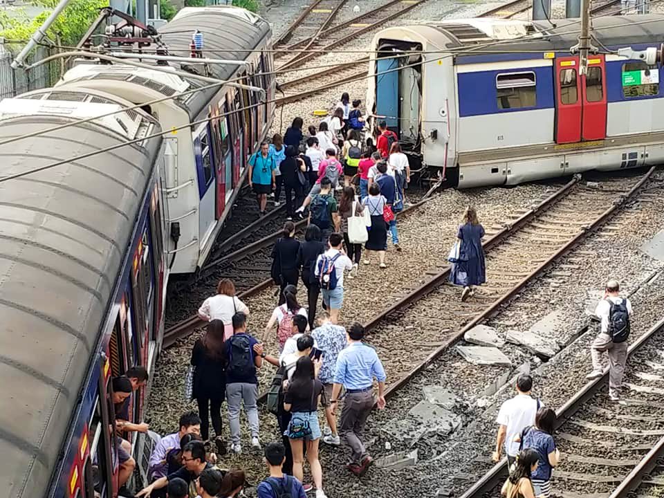 MTR train derailment near Hung Hom has forced suspension of part of East Rail line during morning rush hour. Video circulating online shows passengers have to walk on the railway track. pic.twitter.com/XsW3ETxBNj