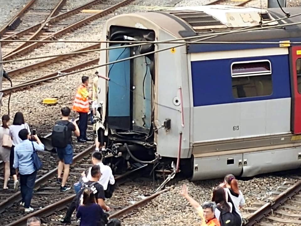 MTR train derailed near Hung Hom Station. So far no reports of injury. 😱 pic.twitter.com/FGDhweEPZA