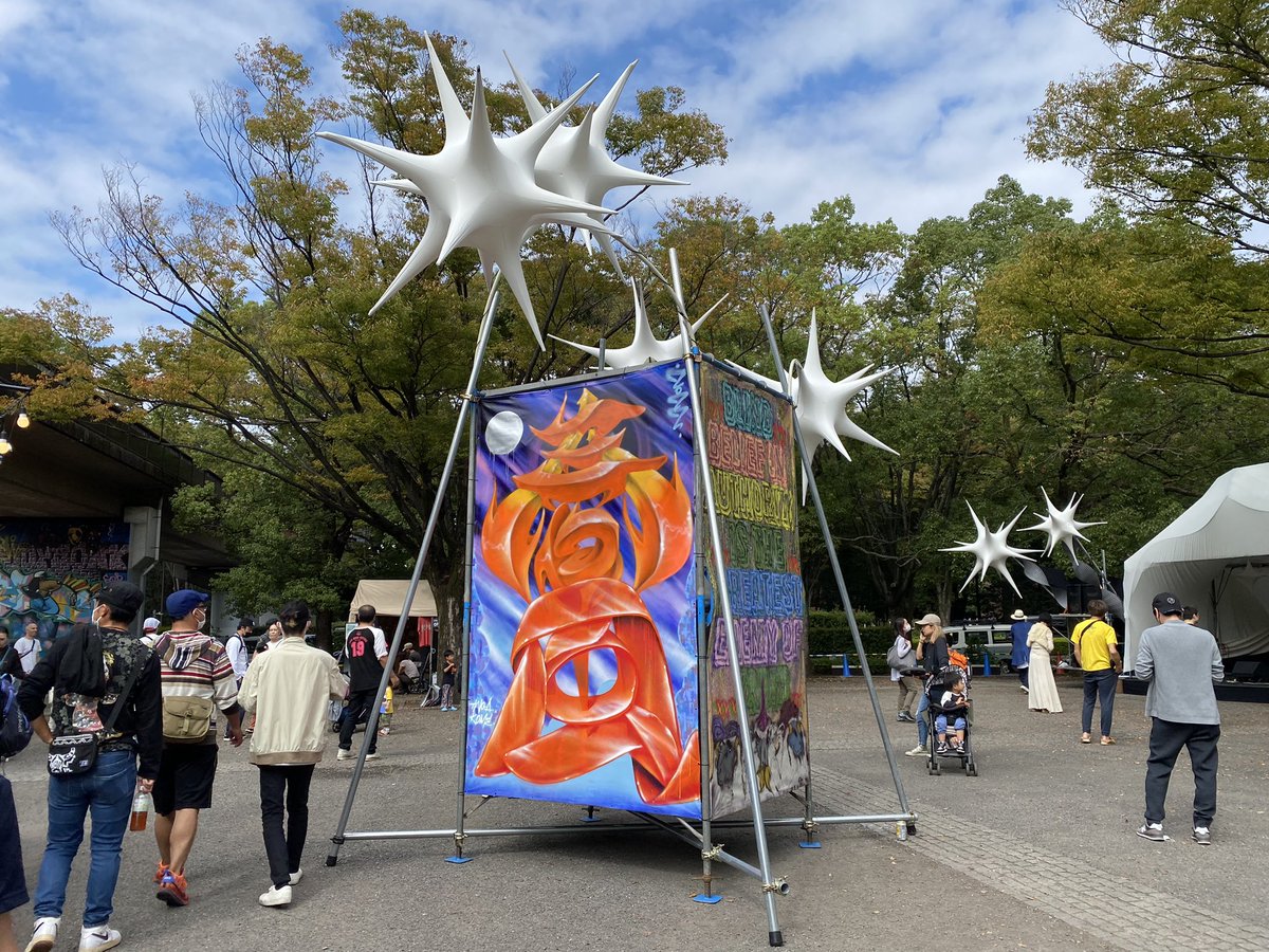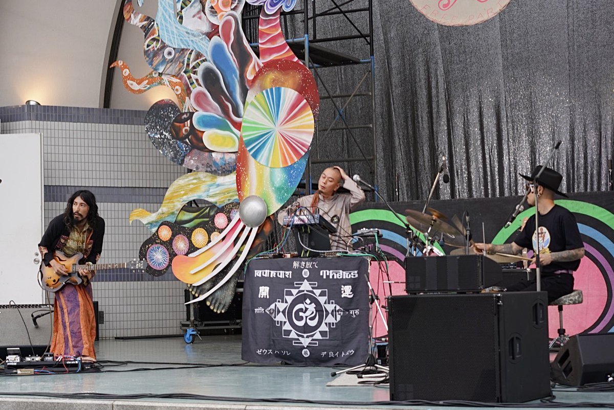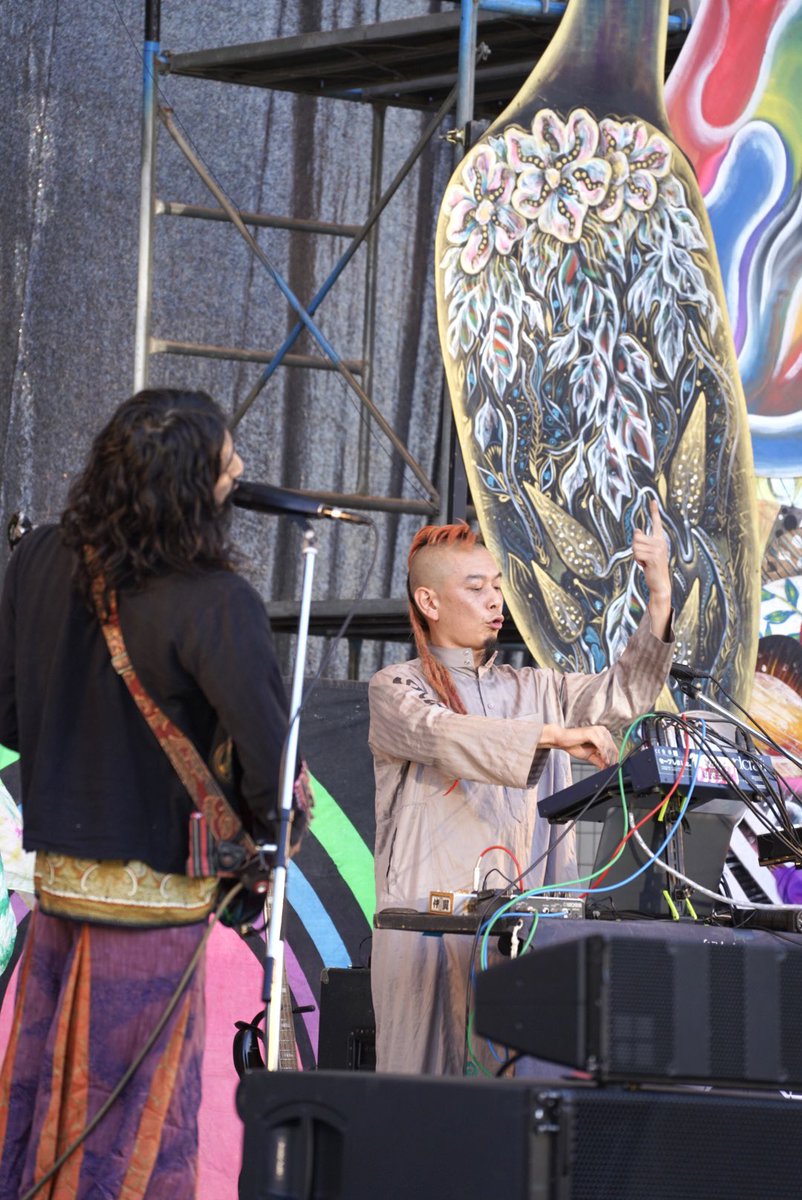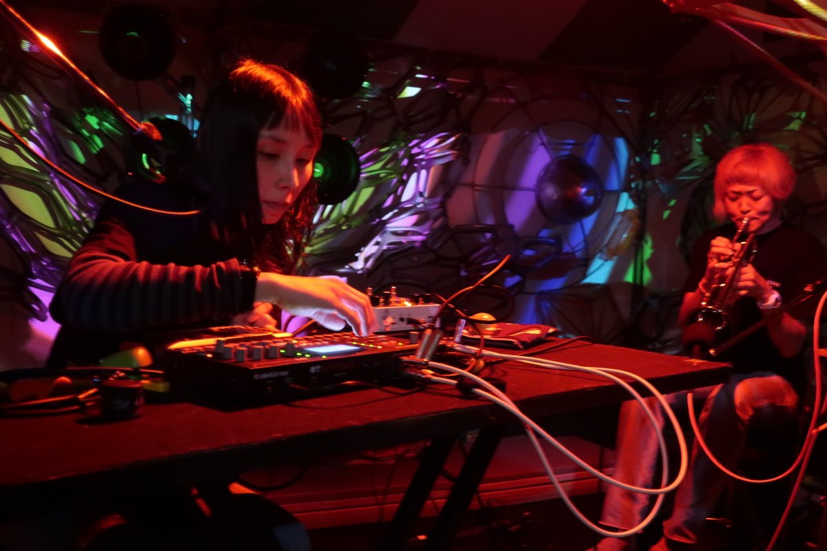 そして、キッズコーナーで初めて観たコマイヌ(山田杏奈+きんたまい)のライブがめちゃくちゃよかった。ドラムンベースやディープハウスのリズムにトランペットやピアニカのダビーな音が気持ちいいダブポップ。ゆらゆらと気持ちよく踊れる音楽だった。