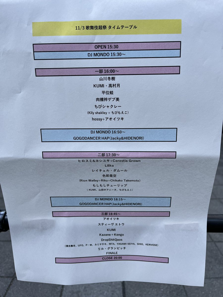 #歌舞伎超祭 のタイムテーブルはこちら。入場は15:30からとのことです! pic.twitter.com/PwLOxnMLII