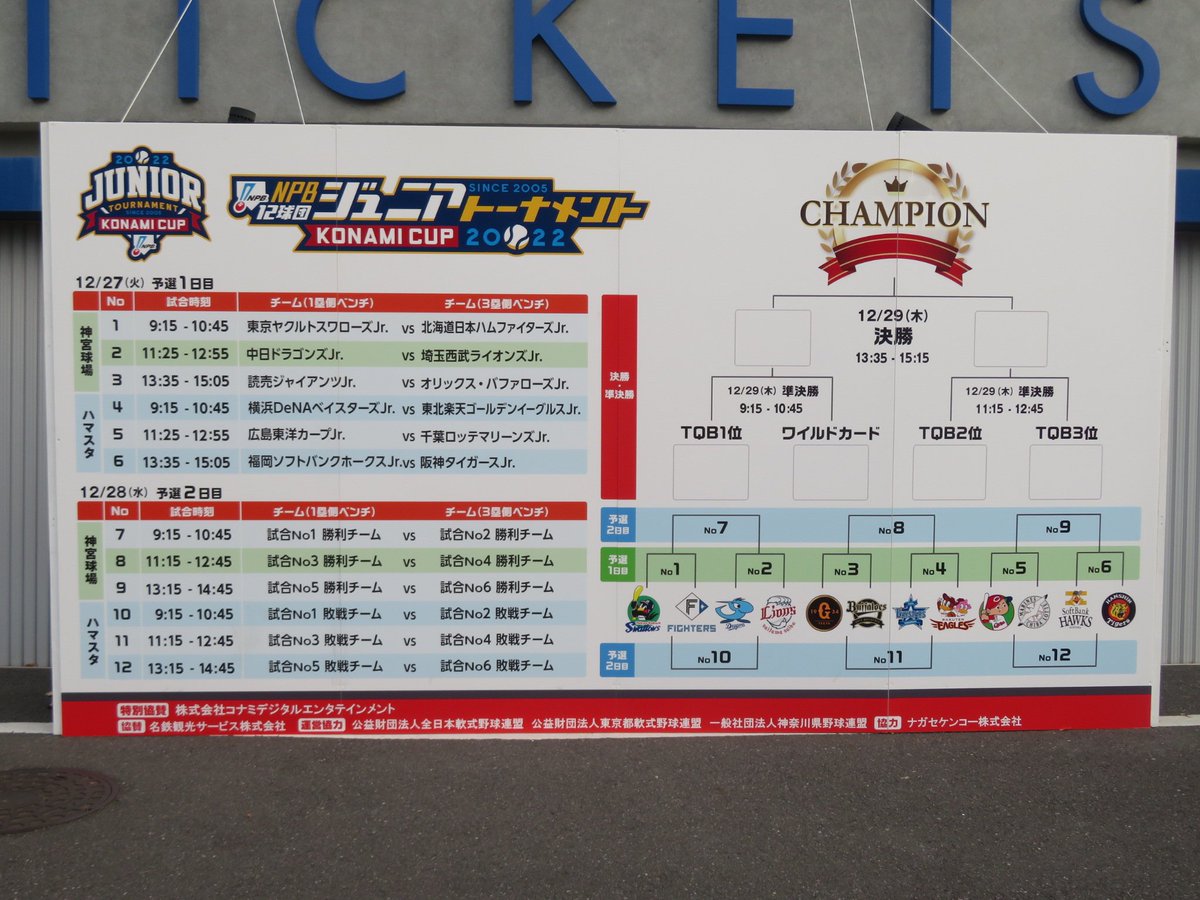 【NPB12球団ジュニアトーナメント KONAMI CUP 2022 試合予定(12/28)第2日】