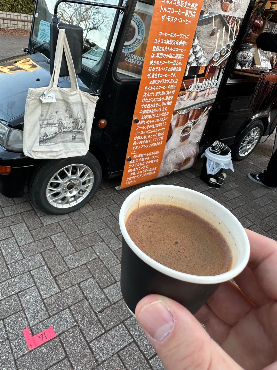 今年初の野外フェスに来たよ!めちゃくちゃ寒いのでホットコーヒーで暖取ろ
